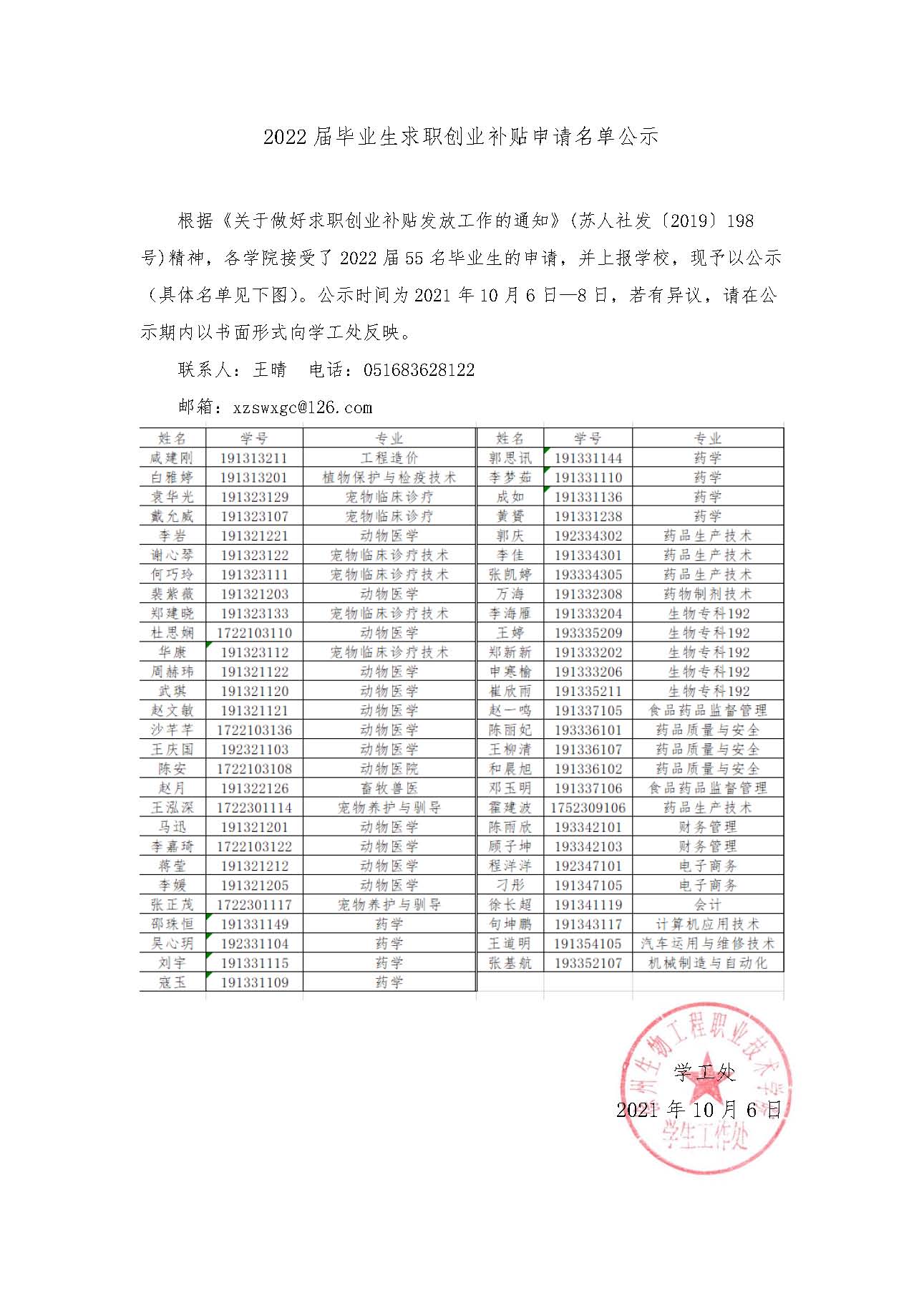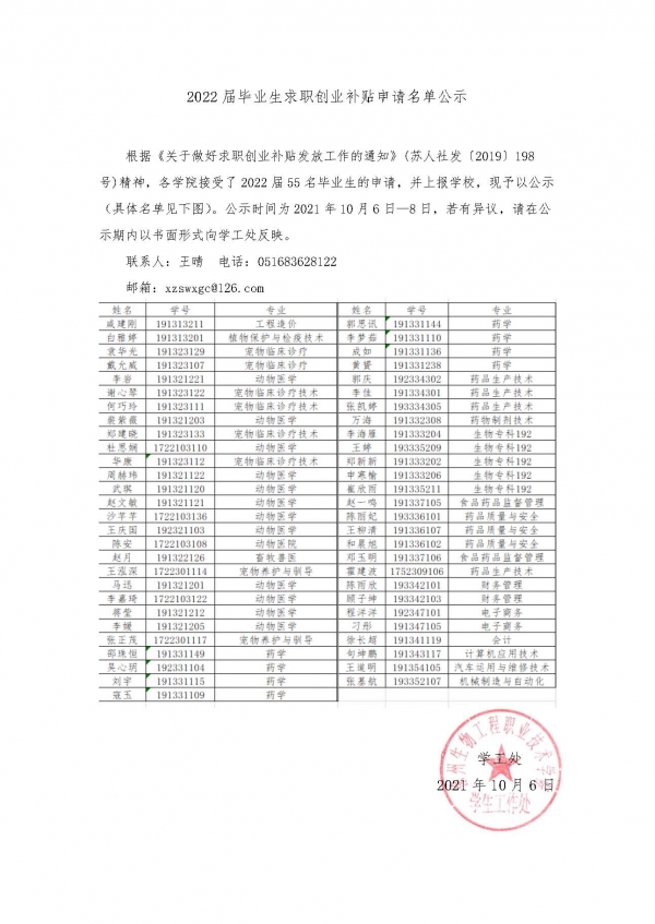 2022届毕业生求职创业补贴申请名单公示