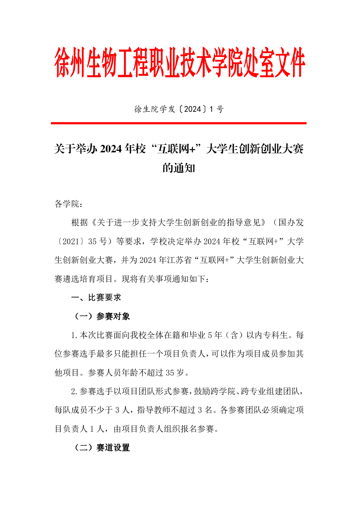 关于举办2024年校“互联网+”大学生创新创业大赛的通知