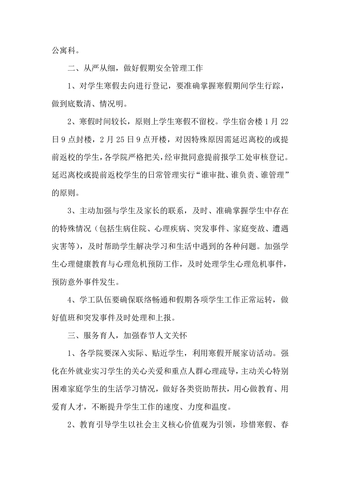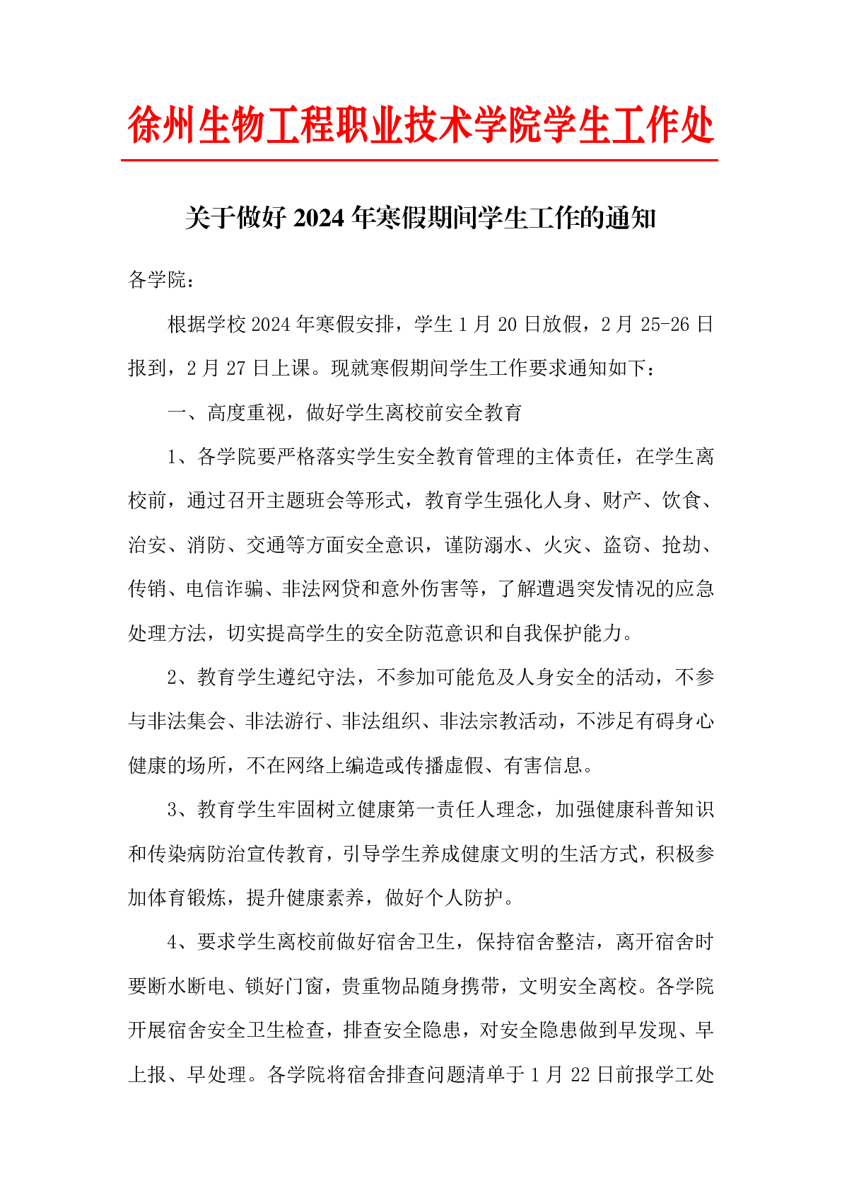 关于做好2024年寒假期间学生工作的通知