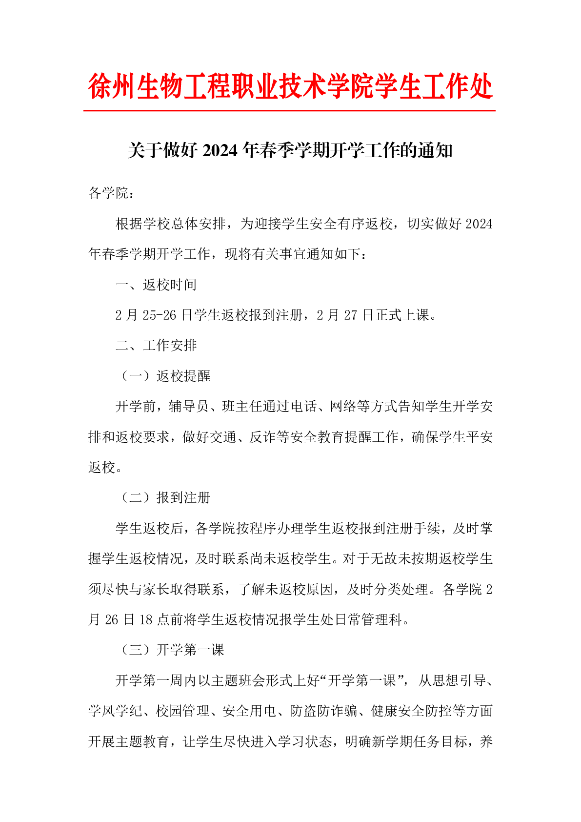 关于做好2024年春季学期开学工作的通知