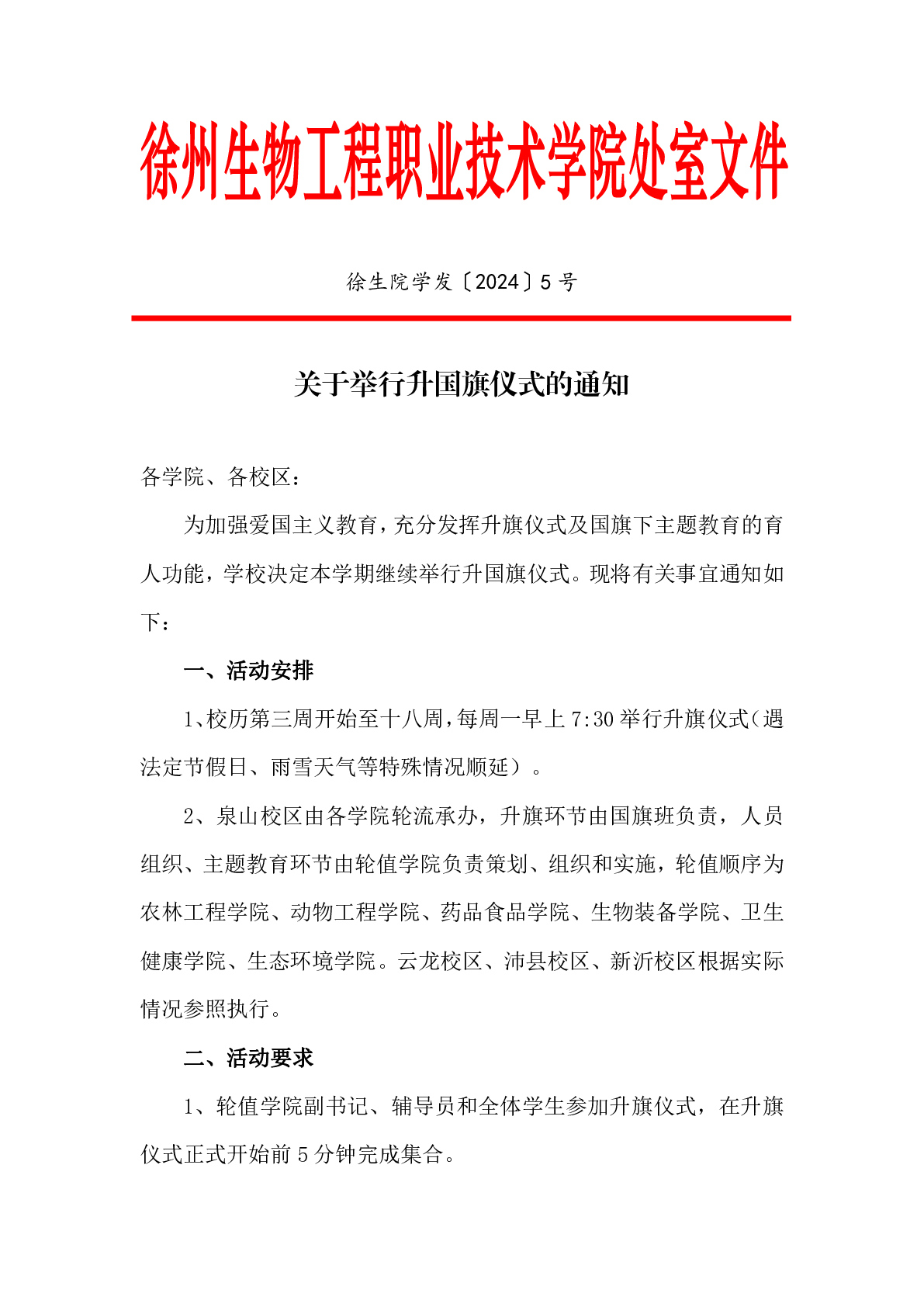 关于举行升国旗仪式的通知