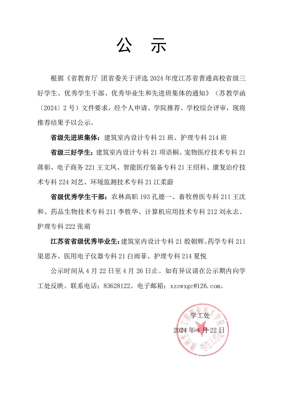 日期:2024-04-22 09:05:00 发布人:学生工作处 浏览量: