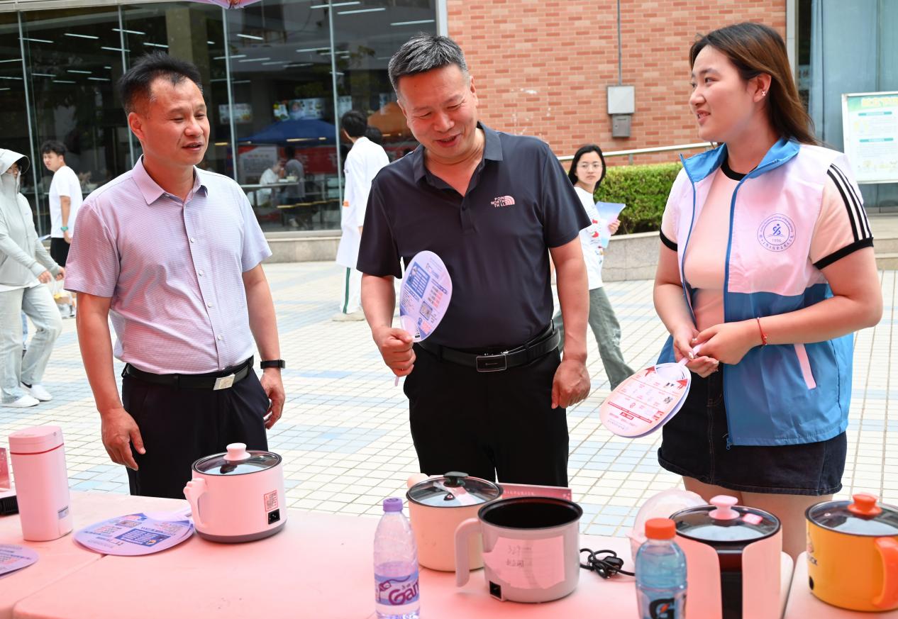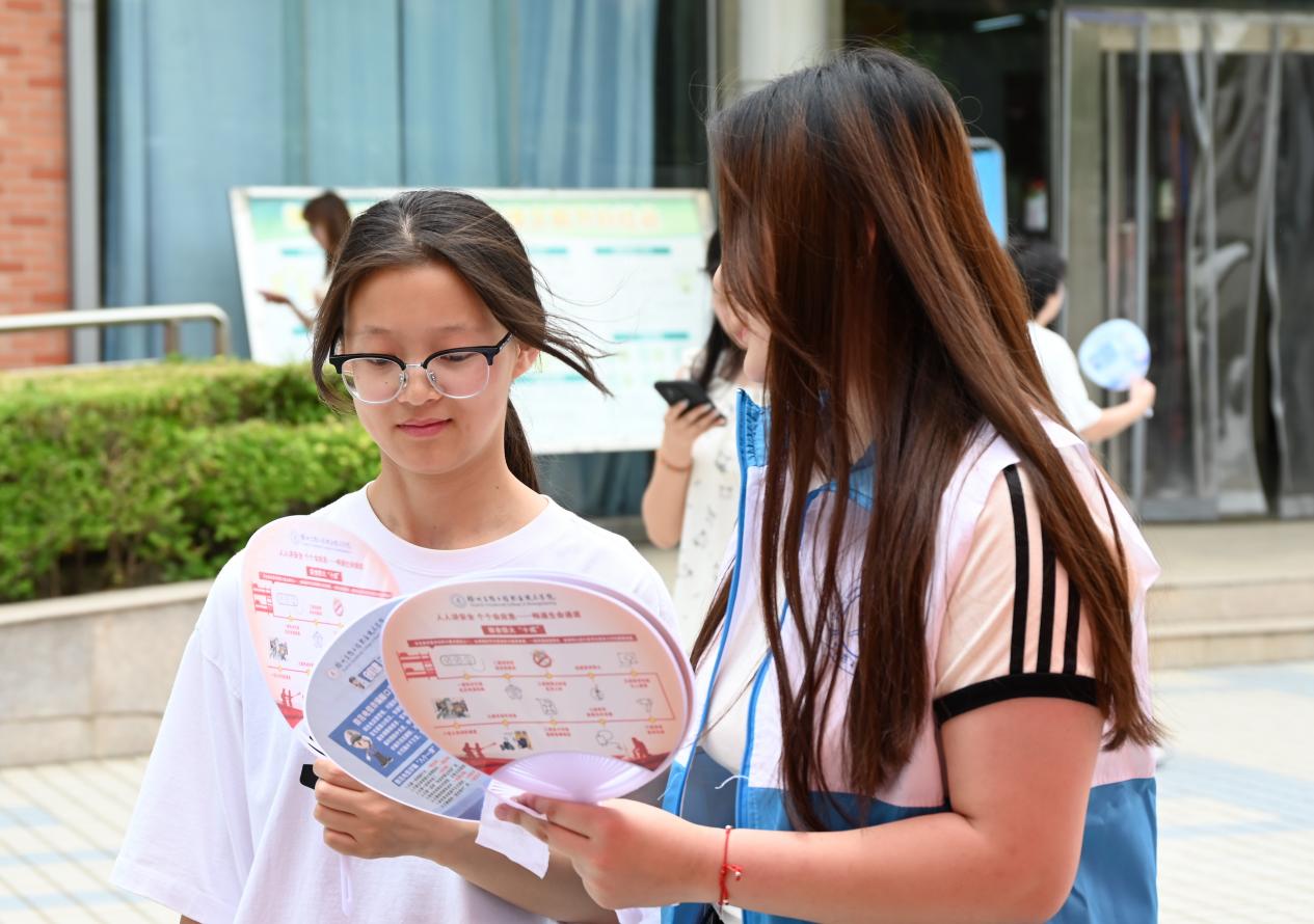 活动现场通过海报、条幅、违禁品实物展示、发放安全知识宣传手扇等形式开展宣传,吸引了很多老师和学生们驻足观看。